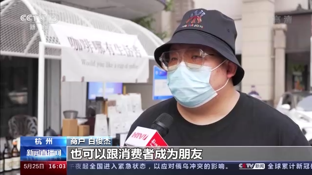 商戶 白俊杰:第一次可以擺出來,擺出來之后其實可以拉近跟消費(fèi)者的距離,商家也更近了。也能更多的展示我們店里的一些東西,也可以跟消費(fèi)者成為朋友。