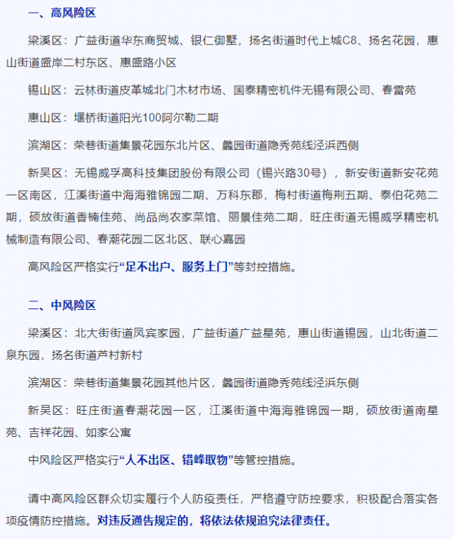 江蘇無錫新增7名陽性人員 重新調(diào)整風(fēng)險(xiǎn)區(qū)域