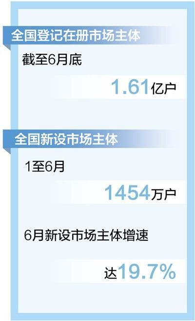截至6月底市場主體達1.61億戶 “四新經濟”企業(yè)占企業(yè)總量比例達46.4%
