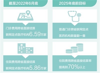 《通知》明確提出,2025年底前,住院費(fèi)用跨省直接結(jié)算率提高到70%以上,普通門診跨省聯(lián)網(wǎng)定點(diǎn)醫(yī)藥機(jī)構(gòu)數(shù)量實(shí)現(xiàn)翻一番,群眾需求大、各地普遍開展的門診慢特病相關(guān)治療費(fèi)用逐步納入跨省直接結(jié)算范圍,異地就醫(yī)備案規(guī)范便捷,基本實(shí)現(xiàn)醫(yī)保報(bào)銷線上線下都能跨省通辦。