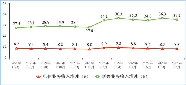 1—7月電信業(yè)務(wù)收入、總量同比分別增長(zhǎng)8.3%和22.2%