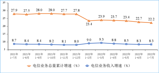 2022年1—7月份通信業(yè)經(jīng)濟(jì)運(yùn)行情況