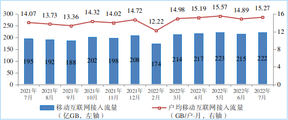 移動(dòng)互聯(lián)網(wǎng)流量較快增長(zhǎng)。1—7月份,移動(dòng)互聯(lián)網(wǎng)累計(jì)流量達(dá)1463億GB,同比增長(zhǎng)19.1%。截至7月末,移動(dòng)互聯(lián)網(wǎng)用戶數(shù)達(dá)14.55億戶,比上年末凈增3955萬(wàn)戶。7月當(dāng)月戶均移動(dòng)互聯(lián)網(wǎng)接入流量(DOU)達(dá)到15.27GB/戶·月,同比增長(zhǎng)8.5%,比上年底高0.55GB/戶·月。