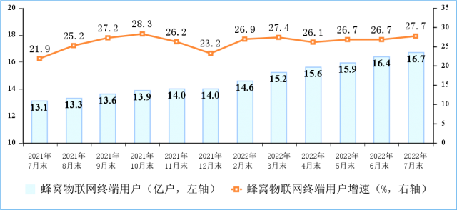 移動(dòng)網(wǎng)絡(luò)連接終端中物聯(lián)網(wǎng)用戶占比近半,IPTV用戶數(shù)穩(wěn)步增加。截至7月末,三家基礎(chǔ)電信企業(yè)發(fā)展蜂窩物聯(lián)網(wǎng)終端用戶16.67億戶,比上年末凈增2.7億戶,占移動(dòng)網(wǎng)終端連接數(shù)(包括移動(dòng)電話用戶和蜂窩物聯(lián)網(wǎng)終端用戶)的比重已達(dá)49.9%。IPTV(網(wǎng)絡(luò)電視)總用戶數(shù)達(dá)3.68億戶,比上年末凈增1979萬(wàn)戶。