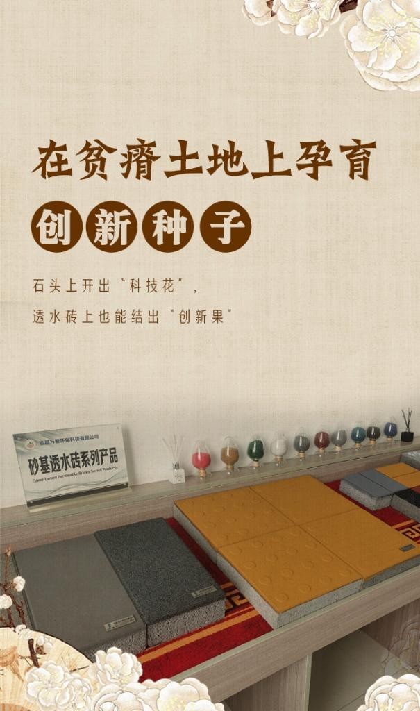 這家環(huán)??萍脊疽彩俏溧l(xiāng)縣近幾年培育的本土創(chuàng)新型企業(yè)。公司負責(zé)人郝晉庭介紹說,紅磚“吃”土地,又不環(huán)保。2014年,公司轉(zhuǎn)向新型透水磚行業(yè),研發(fā)出的新產(chǎn)品透水效果一流,耐堵耐凍,獲得多項國家發(fā)明專利。