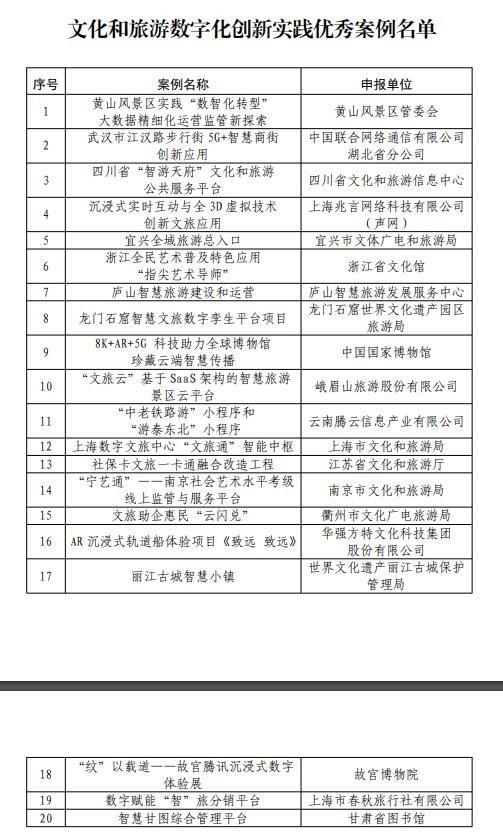 文旅部公布文化和旅游數(shù)字化創(chuàng)新實(shí)踐案例