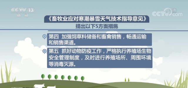 央視網(wǎng)消息:記者12月1日從農(nóng)業(yè)農(nóng)村部了解到,為了應(yīng)對寒潮天氣,保障畜禽安全過冬,最大程度降低災(zāi)害損失,農(nóng)業(yè)農(nóng)村部畜牧獸醫(yī)局組織畜牧生產(chǎn)專家編制了《畜牧業(yè)應(yīng)對寒潮暴雪天氣技術(shù)指導(dǎo)意見》,提出5方面措施指導(dǎo)生產(chǎn)。