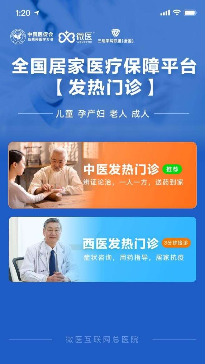 面對各地出現(xiàn)的新冠病毒擴散趨勢和群眾發(fā)熱門診就醫(yī)需求激增,根據(jù)國務院聯(lián)防聯(lián)控機制醫(yī)療救治組《通知》,“全國居家醫(yī)療保障平臺”積極行動,率先進行平臺服務升級,微醫(yī)互聯(lián)網總醫(yī)院火速在平臺上線“發(fā)熱門診”,包括“中醫(yī)發(fā)熱門診”和“西醫(yī)發(fā)熱門診”。