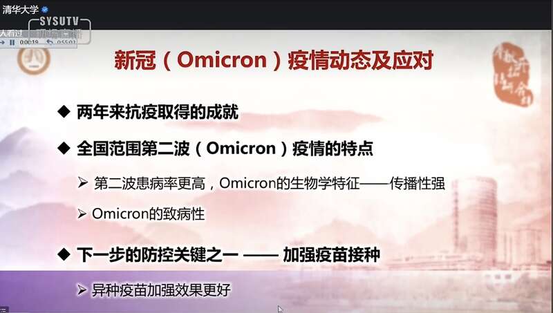 本次講座是“全國(guó)高校抗疫大講堂”的一次活動(dòng),由中山大學(xué)、北京大學(xué)、清華大學(xué)共同主辦。鐘南山系統(tǒng)分析了全國(guó)范圍第二波奧密克戎疫情的特點(diǎn),介紹了奧密克戎的生物學(xué)特征、致病性,以及在大學(xué)教學(xué)環(huán)境中如何讓學(xué)生加強(qiáng)個(gè)人防護(hù),青年人如何應(yīng)對(duì)新冠,加強(qiáng)個(gè)人防護(hù)的8條建議等。