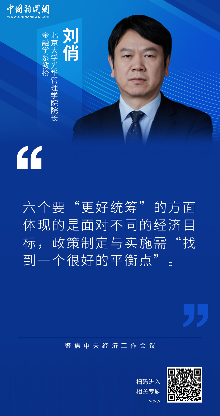 北京大學光華管理學院院長、金融學系教授劉俏在接受中新網(wǎng)“中國新觀察”欄目專訪時表示,六個要“更好統(tǒng)籌”的方面體現(xiàn)的是面對不同的經(jīng)濟目標,政策制定與實施需“找到一個很好的平衡點”。