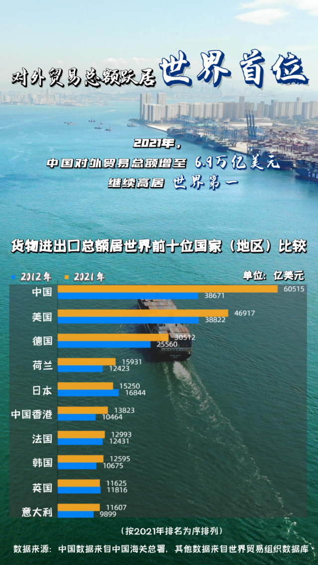 2020年中國對外貿(mào)易總額由2012年的4.4萬億美元升至5.3萬億美元,首超美國成為全球第一大貿(mào)易國。2021年,中國對外貿(mào)易總額加快上升增至6.9萬億美元,繼續(xù)高居世界第一。在經(jīng)濟(jì)全球化頻遭單邊主義、保護(hù)主義等“逆流”襲擾的歷史當(dāng)口,中國從融入和適應(yīng)全球化走向推動和引領(lǐng)全球化,積極倡導(dǎo)建設(shè)開放型世界經(jīng)濟(jì),推動經(jīng)濟(jì)全球化朝著更加開放、包容、普惠、平衡、共贏方向發(fā)展。目前,中國已成為140多個國家和地區(qū)的主要貿(mào)易伙伴,形成更大范圍、更寬領(lǐng)域、更深層次對外開放格局。