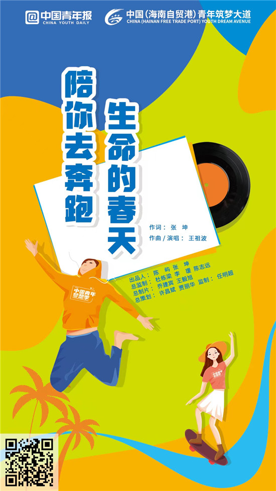 《生命的春天陪你去奔跑》就是這樣一首送給全國青年朋友的MV。這首MV由中國青年報社、共青團(tuán)海南省委聯(lián)合出品,團(tuán)海南省委辦公室主任王祖波作曲,一線優(yōu)秀青年代表演唱,平凡人用心創(chuàng)作唱給平凡人聽,希望為家國圓夢創(chuàng)造不平凡的業(yè)績,希望為“中國(海南自貿(mào)港)青年筑夢大道”(以下簡稱“筑夢大道”)插上一起向未來的夢想的翅膀。