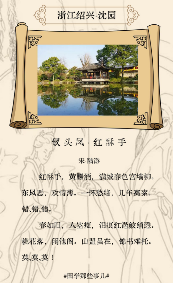 當(dāng)文人墨客于某一個(gè)地點(diǎn)緣事抒情,詩(shī)詞中飽含的情感伴隨著詩(shī)詞名篇穿越千古,讓我們?cè)谝髟亣@息間與詩(shī)人同悲同喜,其抒懷之地也名聞天下,成為后人追懷仰止的著名景點(diǎn)。當(dāng)我們站在古人曾佇立的地方,或憑欄遠(yuǎn)眺、或泛舟湖上......或許更能感知詩(shī)人寫下千古名篇時(shí)的那一份心緒。(中青報(bào)·中青網(wǎng)見(jiàn)習(xí)記者 馮云慧 實(shí)習(xí)生 方淑睿)