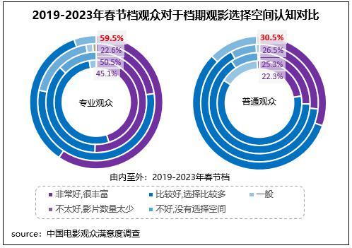 在調(diào)查中,針對(duì)“您認(rèn)為檔期觀影選擇空間如何”這一問(wèn)題,普通觀眾和專業(yè)觀眾認(rèn)為檔期觀影選擇“非常好,很豐富”的占比均為2019年來(lái)的最高值。