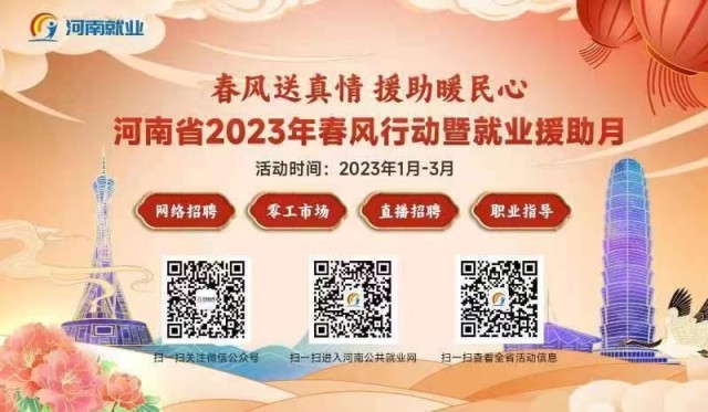 河南省通過“1+6省際勞務(wù)協(xié)作聯(lián)盟”平臺鋪路、省級專場活動高位引領(lǐng)、“四進”就業(yè)援助服務(wù)保障、線下線上同步直播送崗、零工市場全省聯(lián)動快招等形式,把就業(yè)春風送到群眾身邊?;顒悠陂g,計劃組織1.6萬家企業(yè),舉辦2500場招聘活動,發(fā)布100萬崗位。