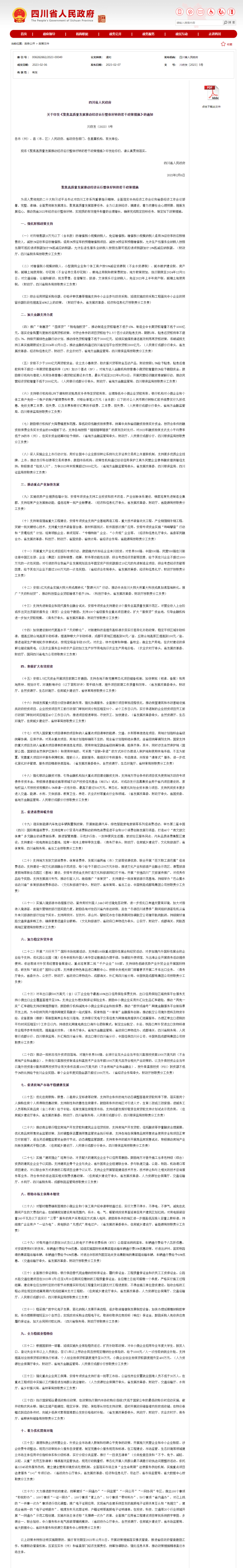 央視網(wǎng)消息:四川省人民政府印發(fā)《聚焦高質(zhì)量發(fā)展推動經(jīng)濟(jì)運(yùn)行整體好轉(zhuǎn)的若干政策措施》。其中,在促進(jìn)房地產(chǎn)市場平穩(wěn)健康發(fā)展方面:優(yōu)化住房限購、限售、二套房認(rèn)定標(biāo)準(zhǔn)等政策,支持符合條件的地方動態(tài)調(diào)整首套房貸款利率下限,落實(shí)居民個人換購住房個人所得稅優(yōu)惠政策,支持剛性和改善性住房需求。鼓勵有條件的地區(qū)對引進(jìn)人才、生育二孩或三孩家庭、進(jìn)城務(wù)工人員等購買商品房(含二手房)給予補(bǔ)貼。培育發(fā)展住房租賃市場,支持成都發(fā)揮好租賃住房貸款支持計(jì)劃試點(diǎn)示范作用。