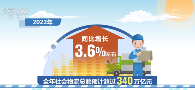 據介紹,2022年全年社會物流總額預計超過340萬億元,同比增長3.6%左右;物流業(yè)總收入預計達到12萬億元,同比增長5%左右。