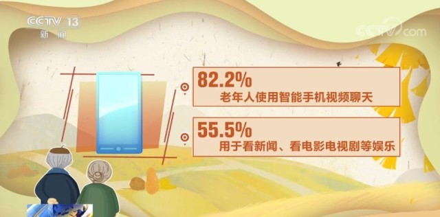 數(shù)字化對老年人生活的影響將激增。65—69歲老人使用智能手機(jī)的占比超過五成。百歲及以上老人仍有1.3%使用智能手機(jī)。82.2%老年人使用智能手機(jī)視頻聊天,55.5%用于看新聞、看電影、電視劇等娛樂。
