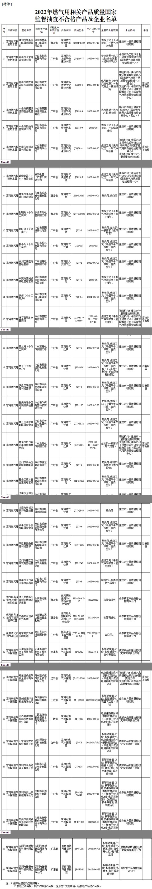 國家市場監(jiān)管總局抽查610批次燃氣產(chǎn)品 發(fā)現(xiàn)41批次產(chǎn)品不合格
