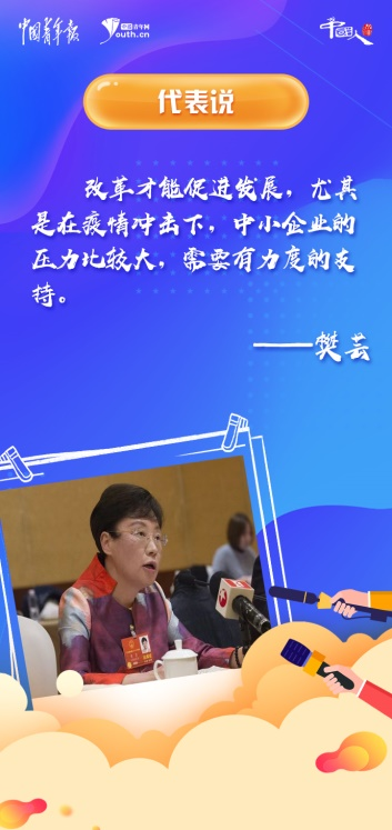 今年全國兩會,樊蕓關(guān)注恢復(fù)經(jīng)濟(jì)增長和提升市場活力方面,“改革才能促進(jìn)發(fā)展,尤其是在疫情沖擊下,中小企業(yè)的壓力比較大,需要有力度的支持”。