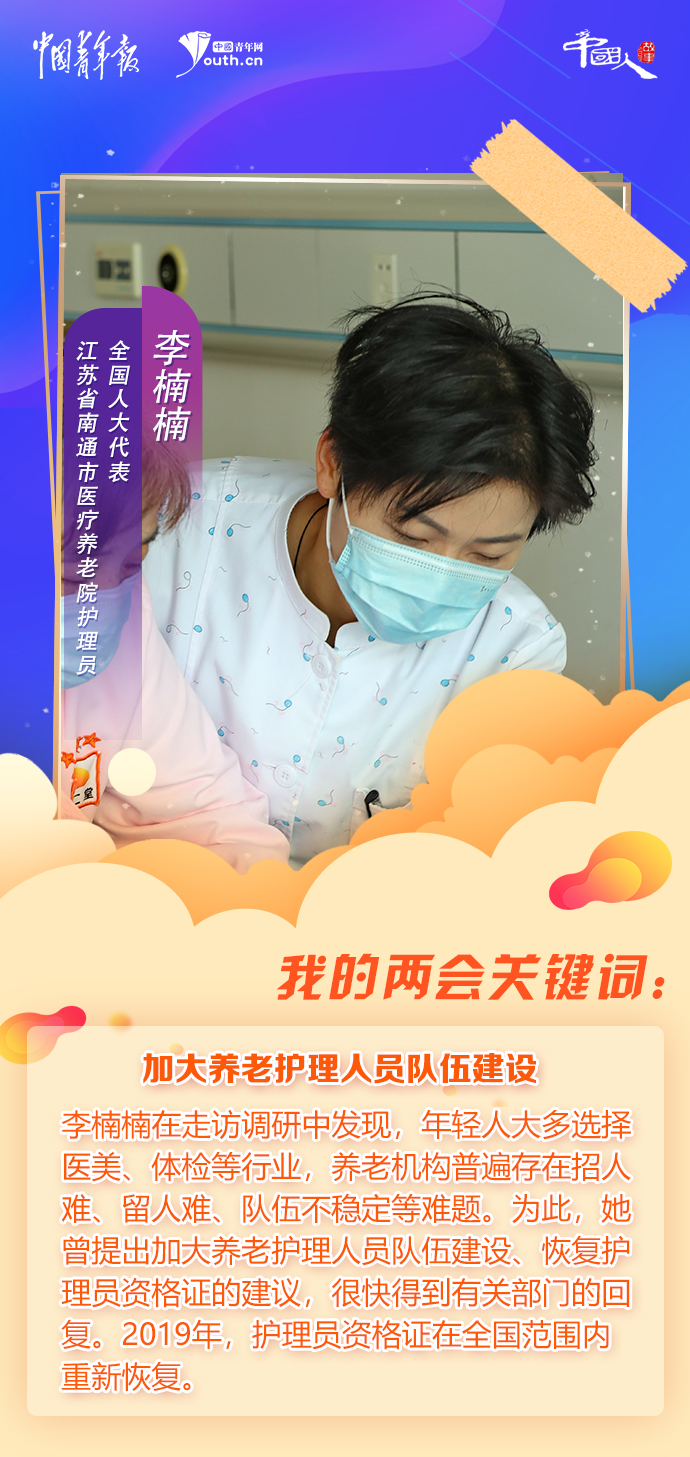 同樣是連任的全國(guó)人大代表,李楠楠投身養(yǎng)老護(hù)理行業(yè)已有10年。此前5年的履職經(jīng)歷,讓她深刻感受到一份建議能帶來(lái)的改變。