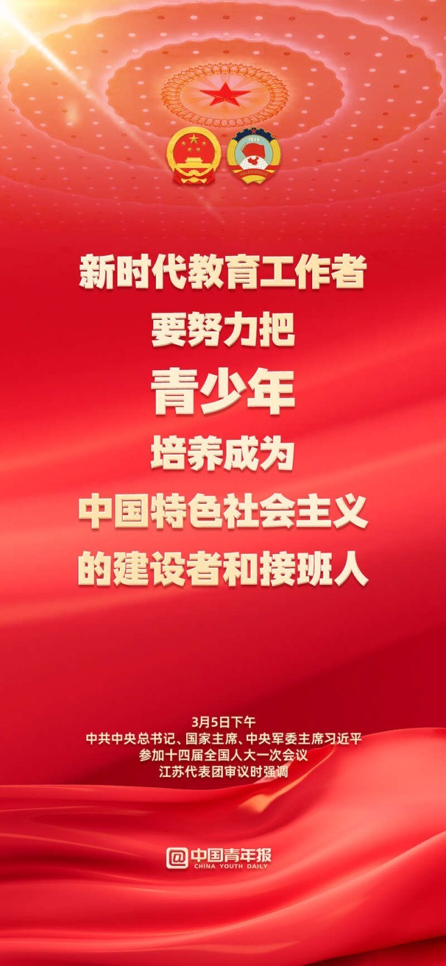 3月5日下午,習近平總書記在參加江蘇代表團審議時指出,新時代教育工作者要努力把青少年培養(yǎng)成為中國特色社會主義的建設(shè)者和接班人;要真正把青少年培養(yǎng)成為擁有“四個自信”的孩子。青少年是國家的未來,讓我們共同奮斗,為孩子們撐起成長的藍天!