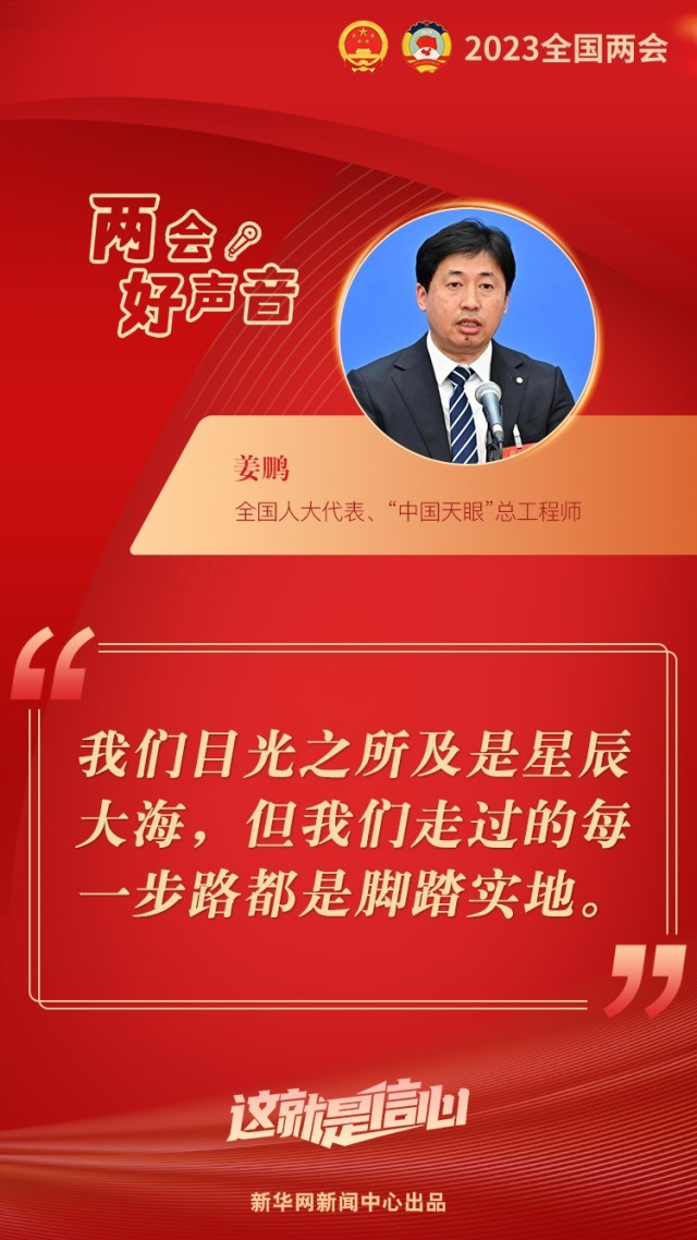 “我們目光之所及是星辰大海,但我們走過的每一步路都是腳踏實地?!?日下午舉行的第二場“代表通道”采訪活動中,全國人大代表、“中國天眼”總工程師姜鵬感慨道。