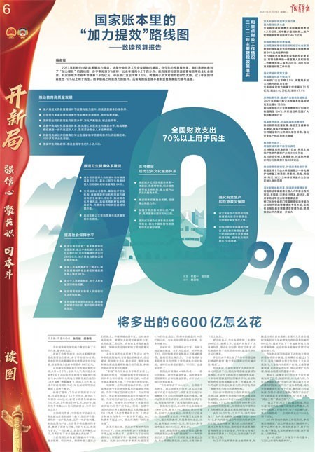 3月7日,《中國(guó)青年報(bào)》兩會(huì)特刊推出可視化版面解讀預(yù)算報(bào)告中的重要數(shù)據(jù)“70%”——連續(xù)5年全國(guó)財(cái)政支出70%以上用于民生。通過(guò)突出這一大數(shù)據(jù),凸顯本屆政府執(zhí)政為民的理念。整版通過(guò)數(shù)據(jù)的變化,解讀預(yù)算報(bào)告,呈現(xiàn)“積極財(cái)政政策提力增效的路線(xiàn)圖”。