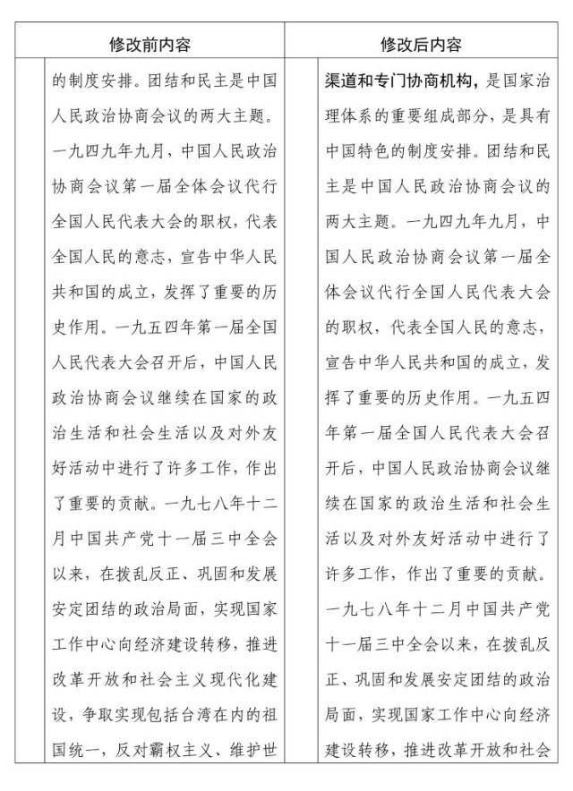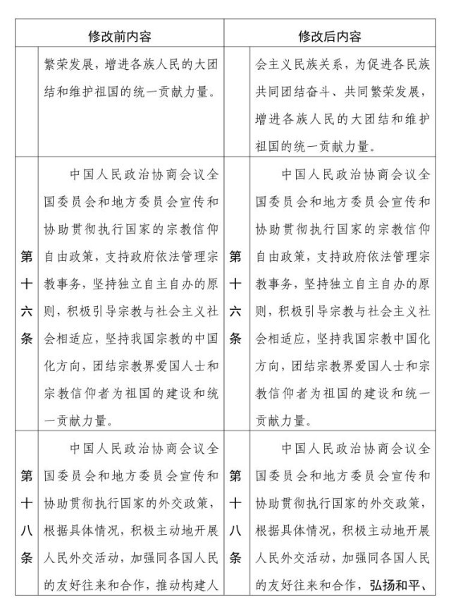 中國(guó)人民政治協(xié)商會(huì)議章程 修改前后內(nèi)容對(duì)照表