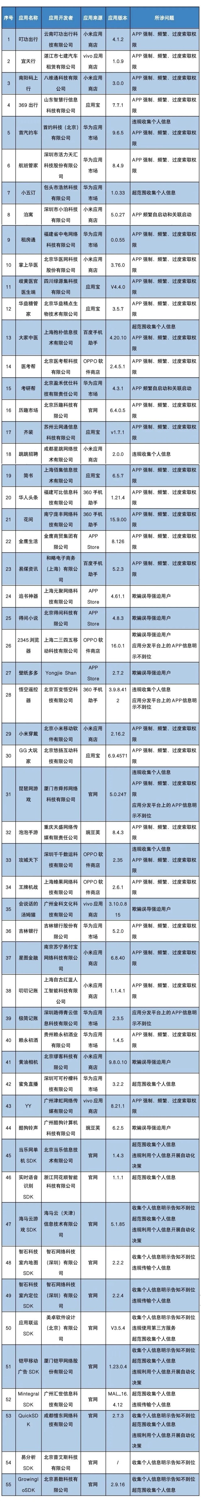 工信部3月21日對叮功出行、宜天行等55款侵害用戶權(quán)益的移動互聯(lián)網(wǎng)應(yīng)用程序(APP)及第三方軟件開發(fā)工具包(SDK)進行通報,要求這55款A(yù)PP及SDK按有關(guān)規(guī)定進行整改。