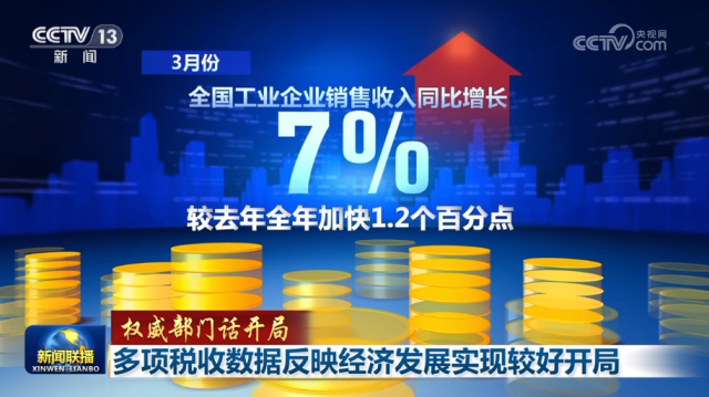 央視網(wǎng)消息(新聞聯(lián)播):在國新辦今天(4月6日)舉行的“權(quán)威部門話開局”系列主題新聞發(fā)布會上,國家稅務(wù)總局負責(zé)人表示,多項稅收數(shù)據(jù)反映出我國經(jīng)濟發(fā)展實現(xiàn)了較好開局。