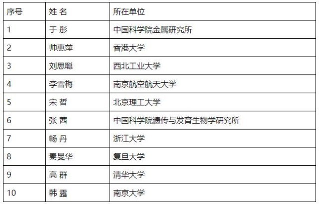 第十八屆中國青年女科學(xué)家獎揭曉 20人5支團隊獲獎
