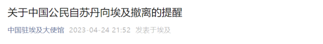 4月24日晚間,我國駐埃及使館發(fā)布關(guān)于中國公民自蘇丹向埃及撤離的提醒: