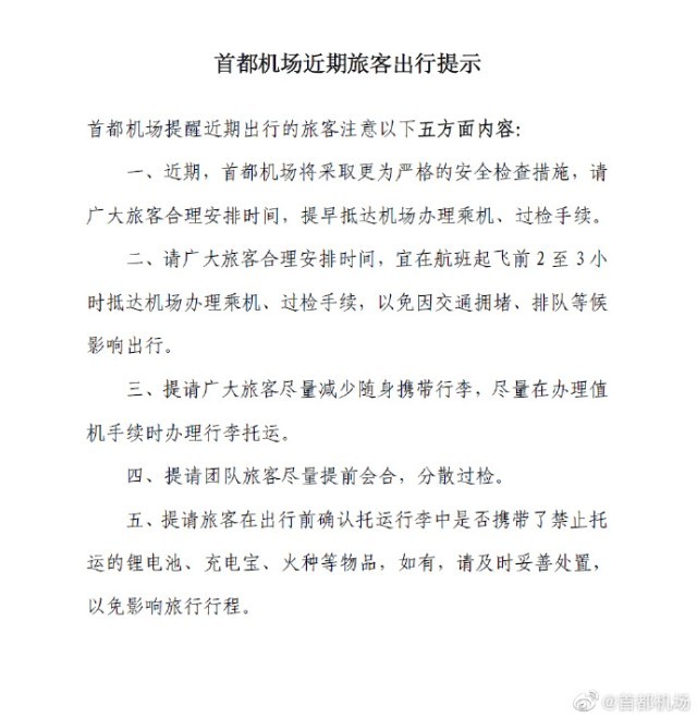 首都機場:近期將采取更為嚴(yán)格的安檢措施