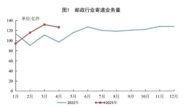 4月份,郵政行業(yè)寄遞業(yè)務(wù)量完成126.4億件,同比增長30.5%。其中,快遞業(yè)務(wù)量完成102.1億件,同比增長36.4%。