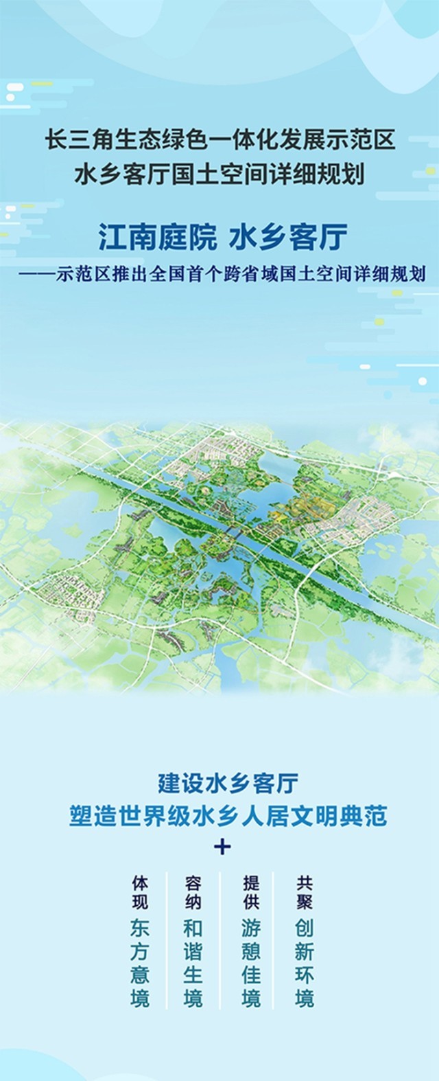 5月24日上午,在上海舉行了長三角一體化示范區(qū)水鄉(xiāng)客廳國土空間詳細規(guī)劃新聞發(fā)布會,會上發(fā)布了《長三角生態(tài)綠色一體化發(fā)展示范區(qū)水鄉(xiāng)客廳國土空間詳細規(guī)劃(2021-2035年)》,這也是全國首個跨省域的國土空間詳細規(guī)劃。水鄉(xiāng)客廳國土空間詳細規(guī)劃共13章、45節(jié),并包含了42張圖集以及詳細圖則,未來示范區(qū)將如何建設水鄉(xiāng)客廳?一圖詳解