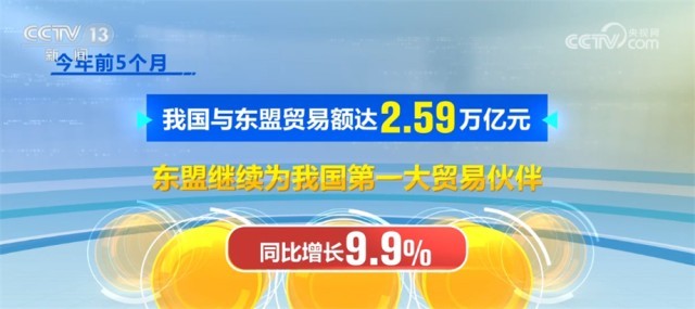 今年前5個月,我國與東盟貿易額達2.59萬億元,東盟繼續(xù)為我國第一大貿易伙伴,同比增長9.9%。