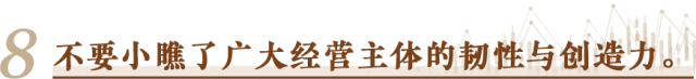 書(shū)寫(xiě)這份“中國(guó)經(jīng)濟(jì)半年報(bào)”的,不光是宏觀政策的制定者,還有億萬(wàn)經(jīng)營(yíng)主體。它們?cè)谑袌?chǎng)經(jīng)濟(jì)風(fēng)風(fēng)雨雨中摸爬滾打過(guò)來(lái),承載著就業(yè),創(chuàng)造著財(cái)富,推動(dòng)著創(chuàng)新,體現(xiàn)著社會(huì)責(zé)任。無(wú)論是服務(wù)業(yè)還是制造業(yè),無(wú)論是傳統(tǒng)產(chǎn)業(yè)還是戰(zhàn)略性新興產(chǎn)業(yè),哪一行哪一業(yè),缺得了充滿活力的經(jīng)營(yíng)主體?看宏觀政策是否有效,標(biāo)準(zhǔn)之一就是看能否持續(xù)廣泛激發(fā)經(jīng)營(yíng)主體的活力。一句話,任何時(shí)候都不要小瞧了廣大經(jīng)營(yíng)主體的韌性與創(chuàng)造力,尊重他們,幫助他們,相信他們。