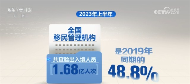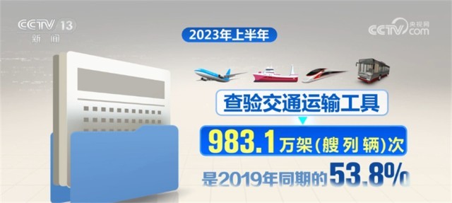 據(jù)國(guó)家移民管理局統(tǒng)計(jì),2023年上半年,全國(guó)移民管理機(jī)構(gòu)共查驗(yàn)出入境人員1.68億人次,是2019年同期的48.8%,其中內(nèi)地居民8027.6萬(wàn)人次,港澳臺(tái)居民7490.3萬(wàn)人次,外國(guó)人843.8萬(wàn)人次(不含邊民);查驗(yàn)交通運(yùn)輸工具983.1萬(wàn)架(艘、列、輛)次,是2019年同期的53.8%,其中,飛機(jī)20.4萬(wàn)架次、船舶19.1萬(wàn)艘次、火車(chē)4.4萬(wàn)列次、汽車(chē)939.2萬(wàn)輛次。