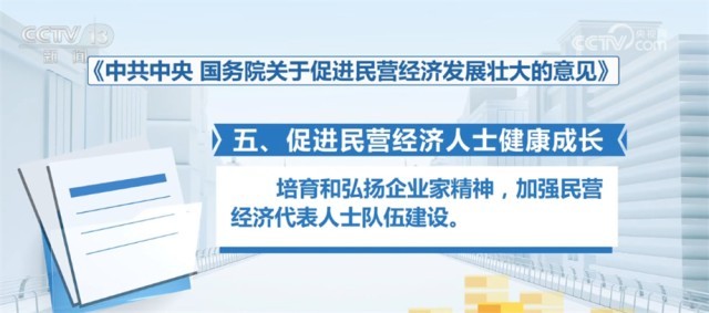 五是促進(jìn)民營(yíng)經(jīng)濟(jì)人士健康成長(zhǎng)。培育和弘揚(yáng)企業(yè)家精神,加強(qiáng)民營(yíng)經(jīng)濟(jì)代表人士隊(duì)伍建設(shè)?!?/p>
