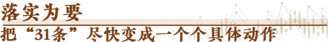 一分部署,九分落實(shí)?!?1條”的最后三條,就是關(guān)于組織實(shí)施的要求。圍繞“31條”,“1+N”配套措施里的“N”,即將陸續(xù)公布,令人期待。