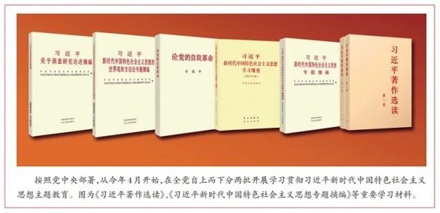 在全黨深入開(kāi)展學(xué)習(xí)貫徹習(xí)近平新時(shí)代中國(guó)特色社會(huì)主義思想主題教育,是深入推進(jìn)新時(shí)代黨的建設(shè)新的偉大工程的重大部署。習(xí)近平新時(shí)代中國(guó)特色社會(huì)主義思想直面新時(shí)代管黨治黨新形勢(shì)新任務(wù),給出了自我革命這一跳出治亂興衰歷史周期率的第二個(gè)答案,為全黨時(shí)刻保持清醒和堅(jiān)定、解決大黨獨(dú)有難題指明了行動(dòng)方向、提供了根本遵循。要堅(jiān)持不懈用習(xí)近平新時(shí)代中國(guó)特色社會(huì)主義思想凝心鑄魂,教育引導(dǎo)各級(jí)黨組織和廣大黨員干部突出問(wèn)題導(dǎo)向,查不足、找差距、明方向,接受政治體檢,打掃政治灰塵,糾正行為偏差,解決突出問(wèn)題,不斷增強(qiáng)黨的自我凈化、自我完善、自我革新、自我提高能力,使我們黨始終充滿蓬勃生機(jī)和旺盛活力,始終成為中國(guó)特色社會(huì)主義事業(yè)的堅(jiān)強(qiáng)領(lǐng)導(dǎo)核心。