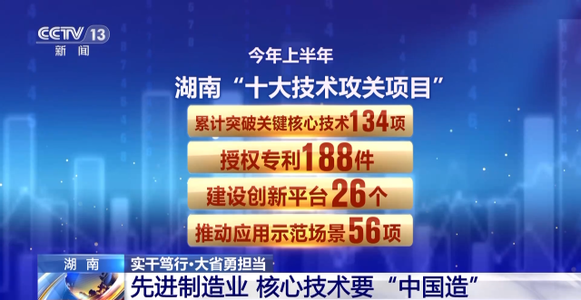 今年上半年,湖南“十大技術(shù)攻關(guān)項目”累計突破關(guān)鍵核心技術(shù)134項,授權(quán)專利188件,建設(shè)創(chuàng)新平臺26個,推動應(yīng)用示范場景56項。與此同時,湖南正在加快推進省級“四大實驗室”的建設(shè),為先進制造業(yè)創(chuàng)新研發(fā)提供基礎(chǔ)研究和成果轉(zhuǎn)化的保障。