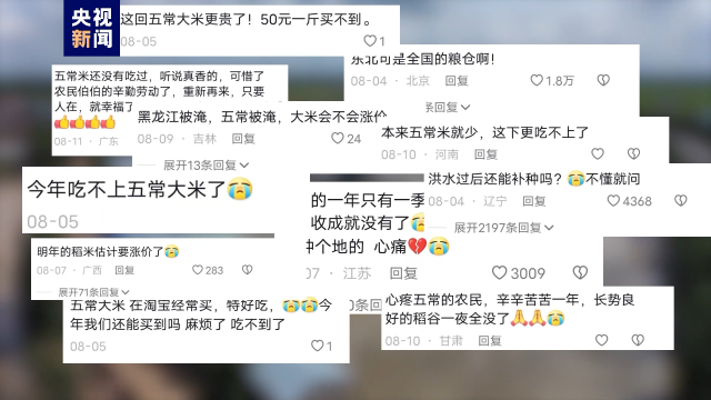 “五常大米被淹了”,引發(fā)網(wǎng)友們的極大關(guān)注,并迅速占領(lǐng)各相關(guān)新聞的評論區(qū)。