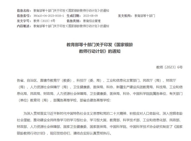 教育部等十部門:經(jīng)過(guò)3年左右,全國(guó)銀齡教師隊(duì)伍總量力爭(zhēng)達(dá)12萬(wàn)人左右