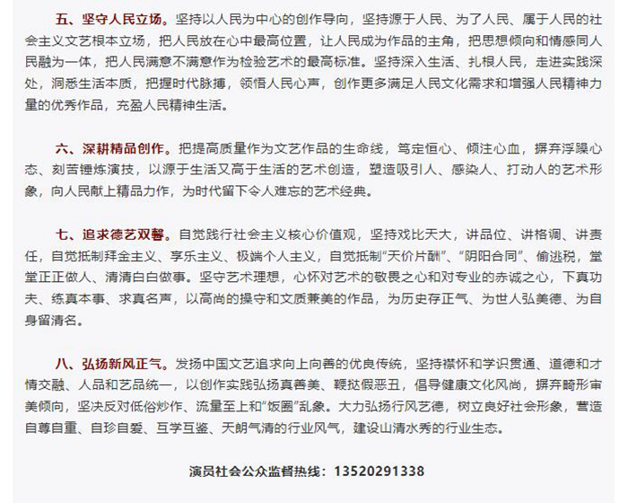 中國廣播電視社會組織聯(lián)合會演員委員會《新時代演員職業(yè)道德準(zhǔn)則》截圖。