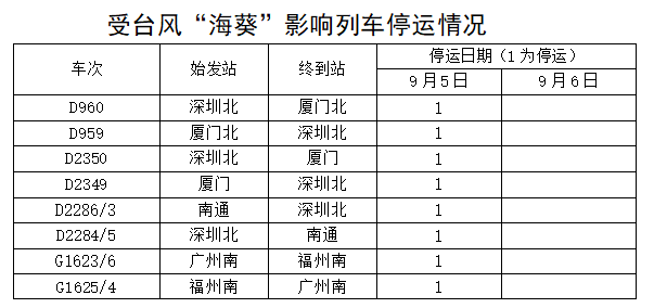 據中央氣象臺消息,今年第11號臺風“??庇诮裉欤?月5日)早晨5點20分前后在福建省東山縣沿海登陸,福建東部部分地區(qū)將有大暴雨,并伴有短時強降水,局地有雷暴大風等強對流天氣。為防范臺風影響,保障鐵路運輸安全,中國鐵路南昌局集團有限公司繼續(xù)調整部分旅客列車運行方案,停運管內途經杭深線福州南至詔安,龍漳線龍巖至漳州,昌福線三明北至福州等區(qū)段旅客列車。同時,加開15趟旅客列車,方便旅客出行。