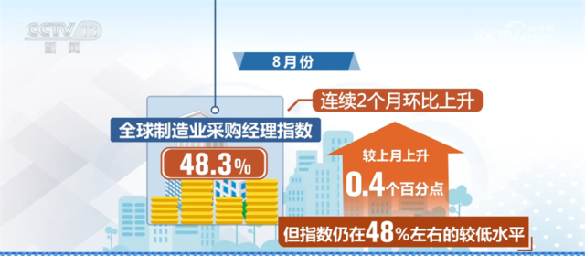 8月份全球制造業(yè)采購經(jīng)理指數(shù)為48.3%,較上月上升0.4個百分點,連續(xù)2個月環(huán)比上升,但指數(shù)仍在48%左右的較低水平,全球經(jīng)濟(jì)呈弱勢修復(fù)態(tài)勢,總體趨緊的大環(huán)境沒有改變,需求收縮壓力仍然存在。