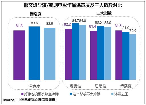 該片由邢文雄擔任監(jiān)制、編劇,與其導(dǎo)演/編劇的另外兩部電影作品(2020年賀歲檔上映的《沐浴之王》、2022年春節(jié)檔上映的《這個殺手不太冷靜》)相比,《好像也沒那么熱血沸騰》的觀賞性、思想性得分略低,但傳播度為三部影片中最高。