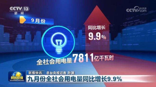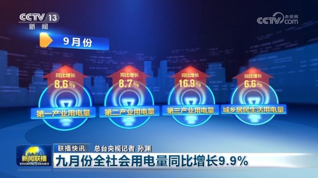 九月份全社會用電量同比增長9.9%
